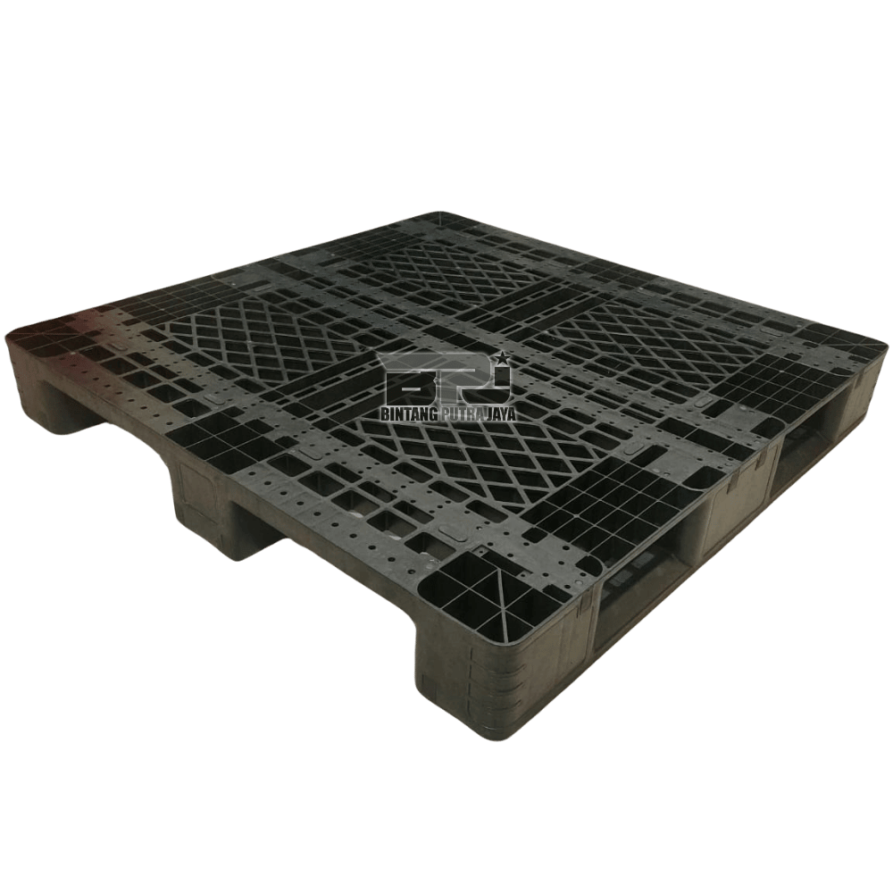 Pallet Plastik Bekas & Baru 110x130x13 cm – Warna Hitam – Bentuk Jaring [BPJ1113-3H]