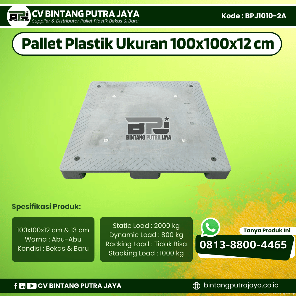 ![Pallet Plastik Bekas & Baru 100x100x12 cm - Warna Abu-Abu - Bentuk Flat [BPJ1010-2A]](https://bintangputrajaya.co.id/wp-content/uploads/2026/01/Pallet-Plastik-Baru-Bekas-100x100x12-BPJ1010-2A.png)