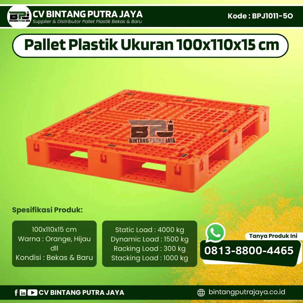![Pallet Plastik Bekas & Baru 100x110x15 cm - Warna Orange - Bentuk Jaring [BPJ1011-5O]](https://bintangputrajaya.co.id/wp-content/uploads/2026/01/Pallet-Plastik-Baru-Bekas-100x110x15-BPJ1011-5O.png)