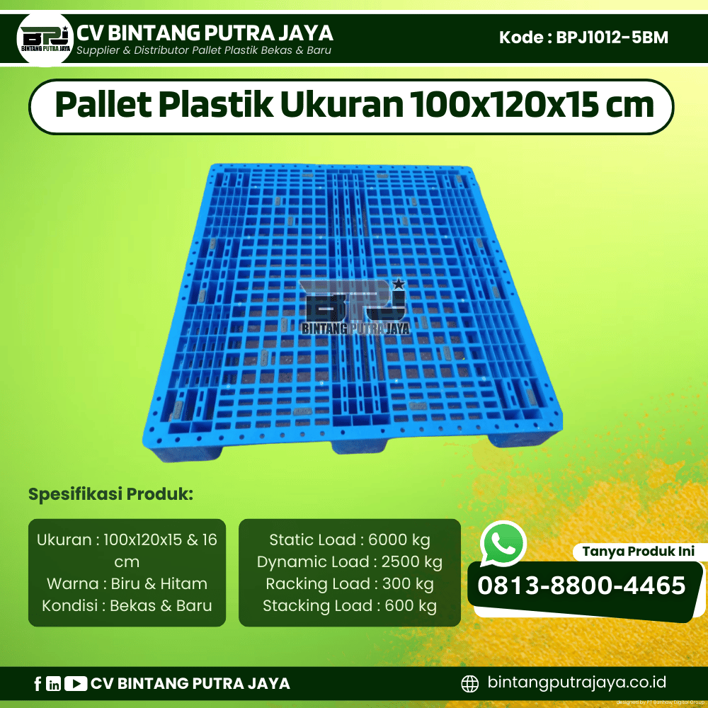 ![Pallet Plastik Bekas & Baru 100x120x15 cm - Warna Biru - Bentuk Jaring [BPJ1012-5BM]](https://bintangputrajaya.co.id/wp-content/uploads/2026/01/Pallet-Plastik-Baru-Bekas-100x120x15-BPJ1012-5BM.png)