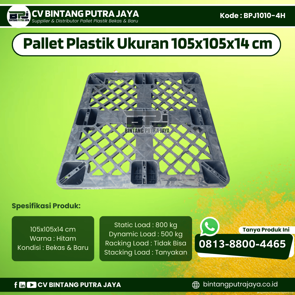 ![Pallet Plastik Bekas & Baru 105x105x14 cm - Warna Hitam - Bentuk Jaring [BPJ1010-4H]](https://bintangputrajaya.co.id/wp-content/uploads/2026/01/Pallet-Plastik-Baru-Bekas-105x105x14-BPJ1010-4H.png)