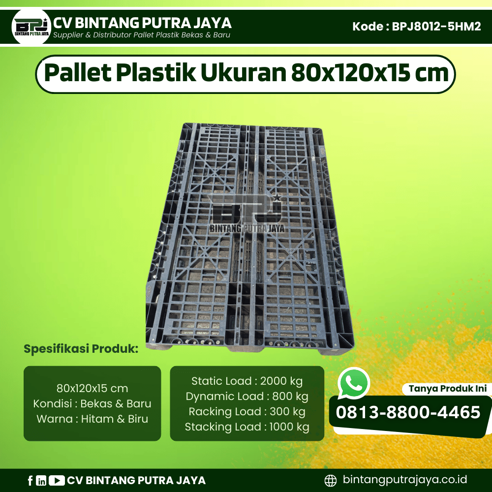 ![Pallet Plastik Bekas & Baru 80x120x15 cm - Warna Hitam - Bentuk Jaring [BPJ8012-5HM2]](https://bintangputrajaya.co.id/wp-content/uploads/2026/01/Pallet-Plastik-Baru-Bekas-80x120x15-BPJ8012-5HM2.png)